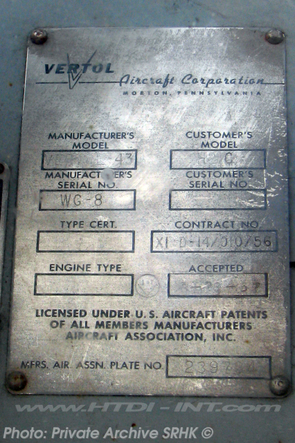 This helicopter belongs to the license series Weserflug V43. As one of the early helicopters in its design, it still had wooden blades and was registered to the Bundeswehr as 8308 from September 1957.